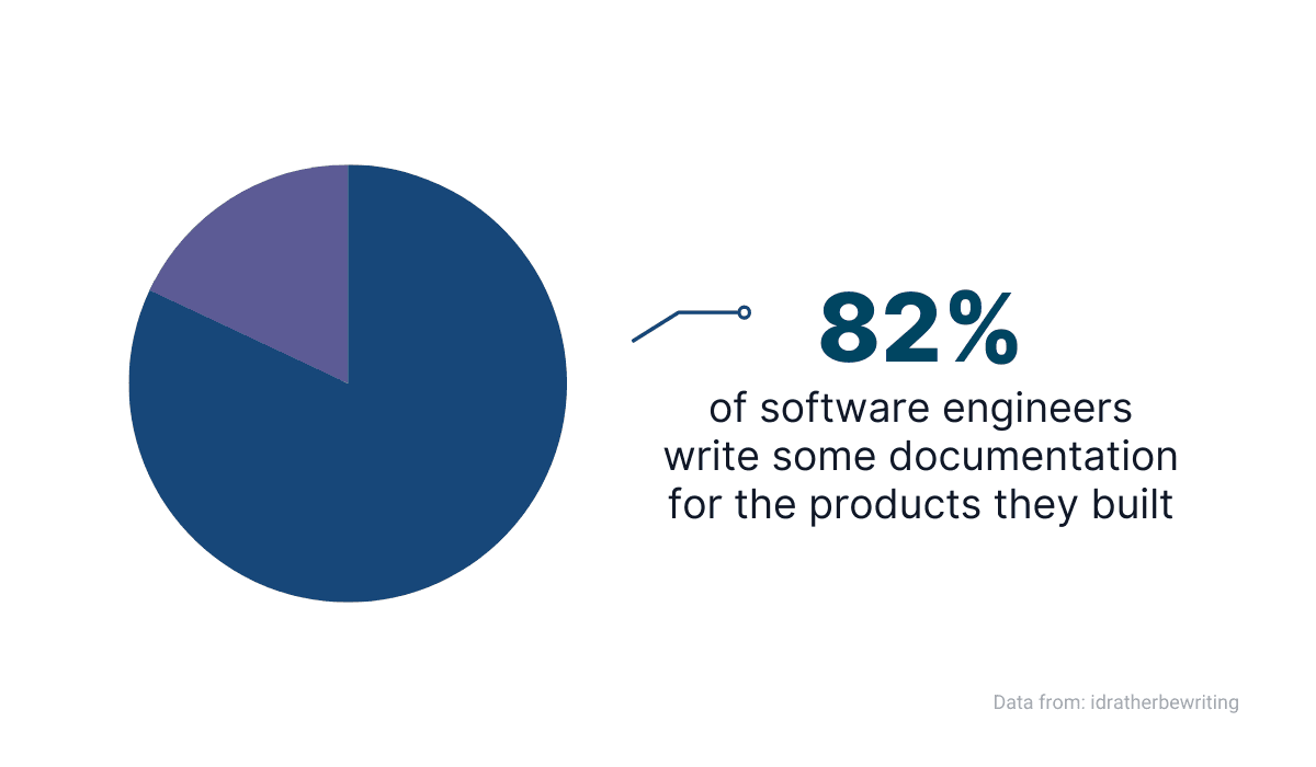 According to a survey conducted by Tom Johnson on his technical writing blog I’d Rather Be Writing, 82% of developers wrote at least some of the documentation for the products they built.