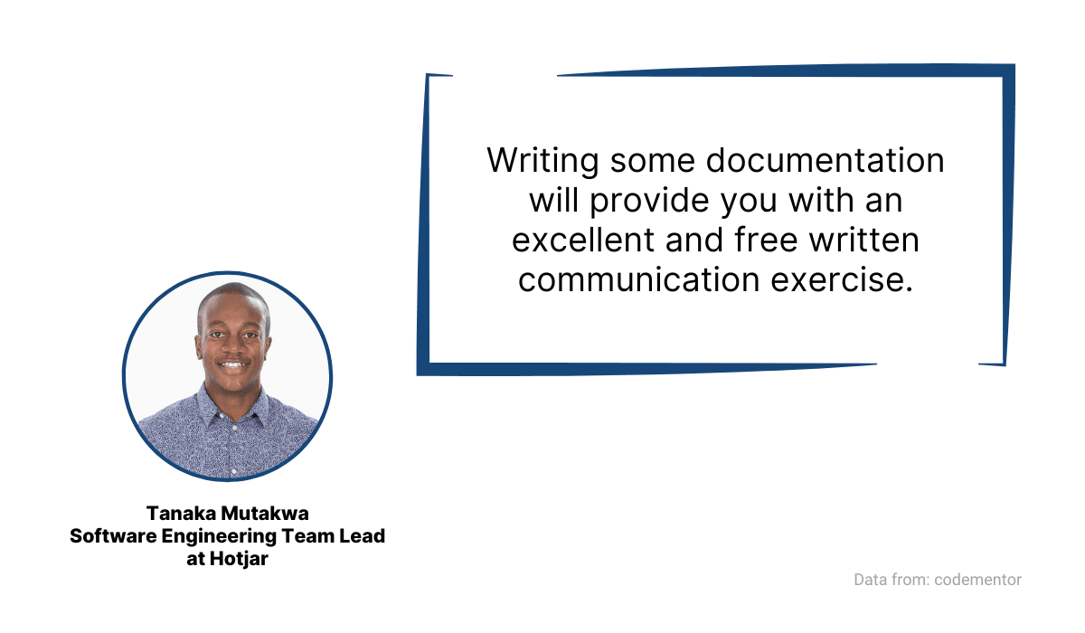 After all, writing is a form of communication. According to Tanaka Mutakwa, Software Engineering Team Lead at Hotjar, writing technical content is a great exercise in refining those skills.