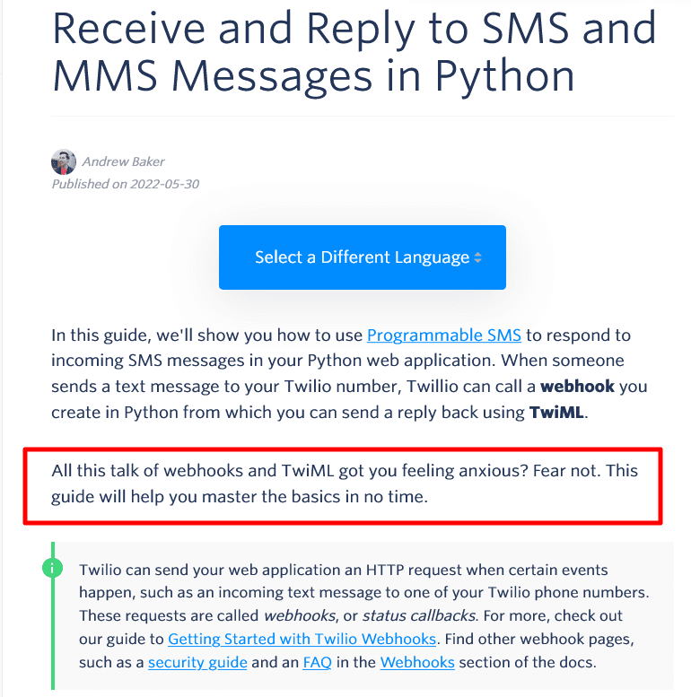 However, that doesn’t mean that they can instinctively know how Twilio works, and the company is aware of that, so they communicate with users in an approachable and laid-back manner.