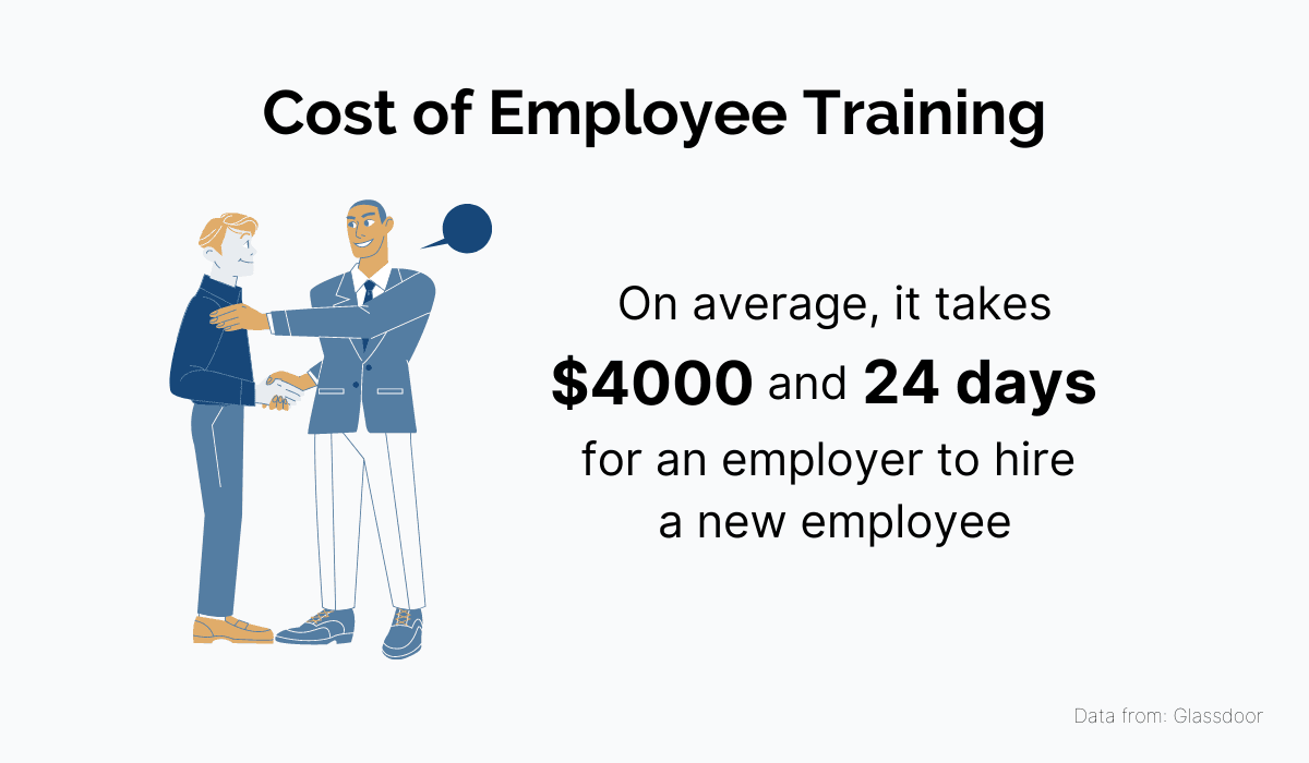 Employee training can be rather pricey and time-consuming. For instance, Glassdoor reports that the average employer spends about $4000 and 24 days to hire a new employee.