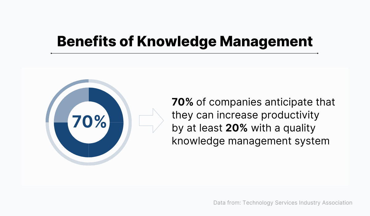 In fact, according to a Technology Services Industry Association study, by setting up an efficient knowledge management system, more than 70% of companies anticipate that they can increase productivity by at least 20%.