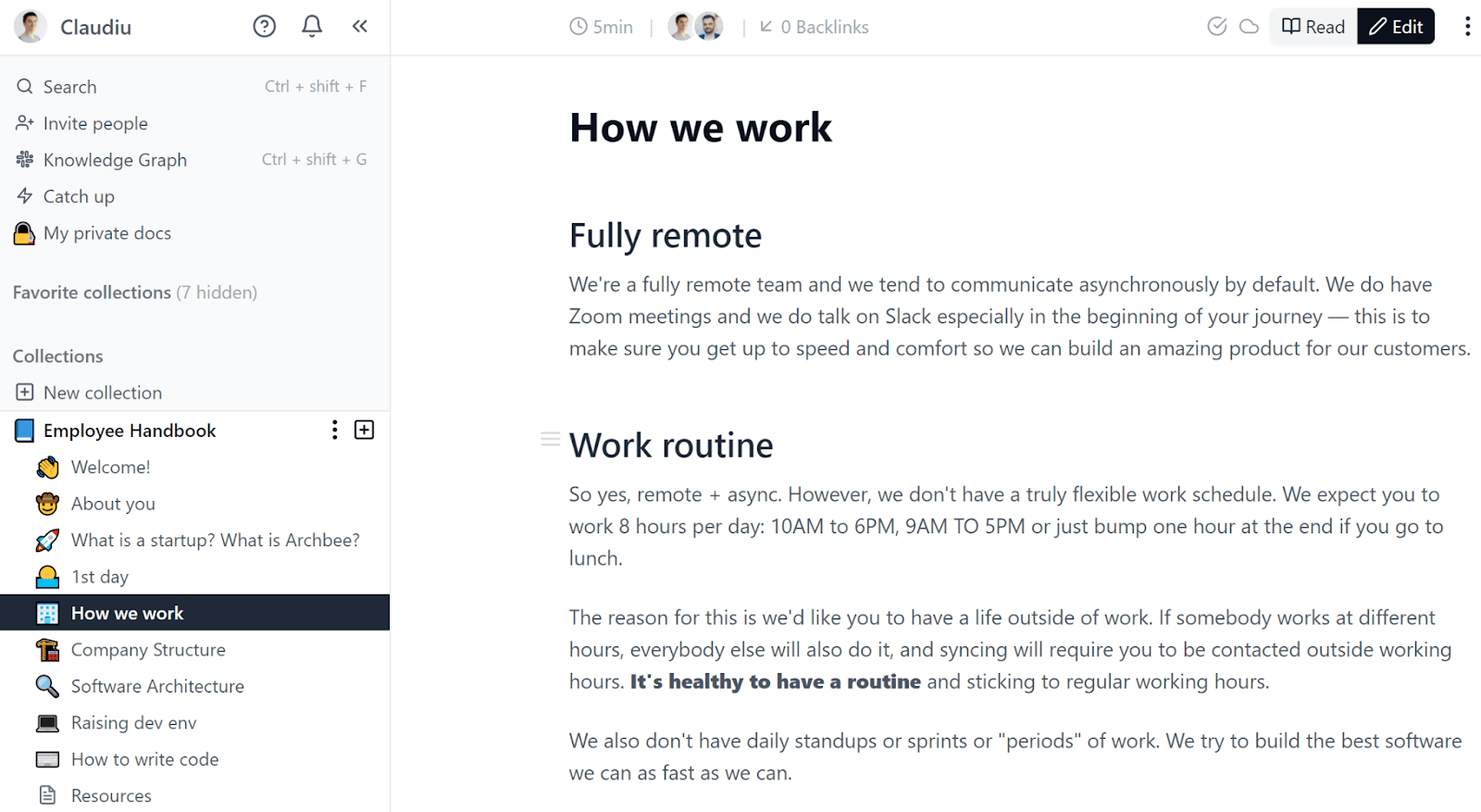Archbee enables you to create a knowledge base just for your company and your product. And that means that you can have your own Wikipedia that keeps all the information essential for your business in one place.