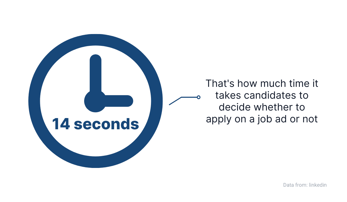 A job description should hook the reader and prevent them from moving to other job ads, and according to a study by LinkedIn, you don’t have a lot of time to do that—more precisely, 14 seconds on average.
