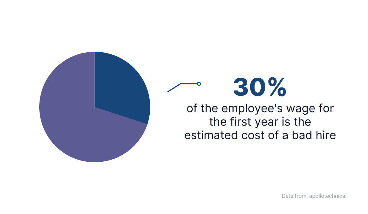 And that can be costly for the company. According to the data cited on Appolo Technical, the cost of a bad hire is nearly a third of an employee's first year's wages.
