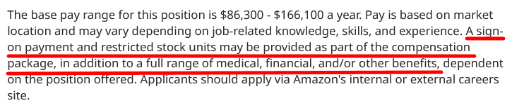 Even if the salary depends on experience, education, or other factors, you can display a range, as Amazon did for the job ad below.